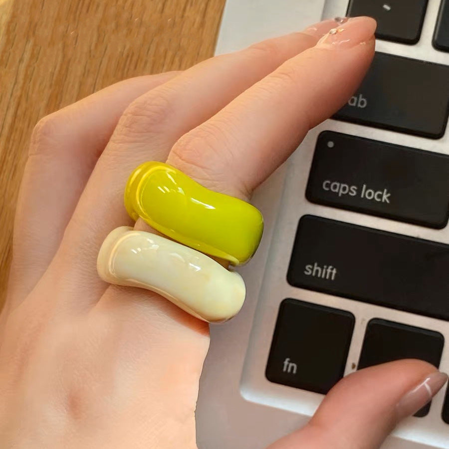 Irregular Wide Large Chunky Rings for Women Vintage Crystal Resin Autumn Winter Geometric Stacking Wear Finger Jewelry